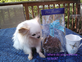 I am happy to say that I just had a really fun birthday! The fun started even before when I received a gift that had to be refrigerated -this treat came from Mrs. Prindable's. My brother's family sent a huge apple covered with caramel, chocolate & nuts -yum! Let's just say that this brother's name is Michael. He wanted to know what size "huge" was and asked me to take a picture of the apple with another object, for size reference. {Telling Michael that it served 10 -12, wasn't enough information.} I had just the item in mind... Peanut! Our Chihuahua helps me out with my blog here & there and he definitely fit the bill once again.